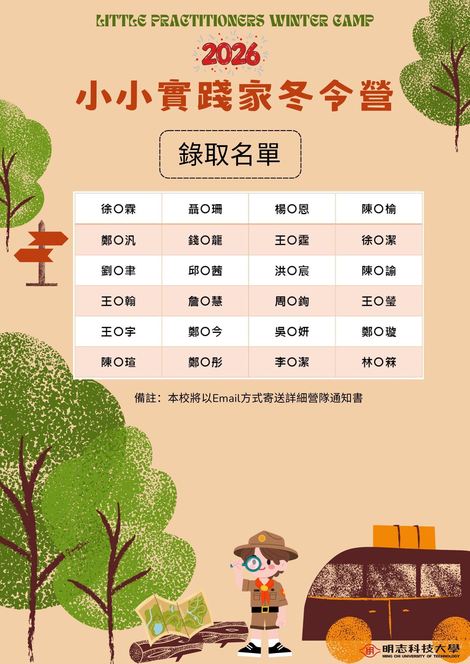 🔸以下是錄取名單,請務必全程參加喔!🔸