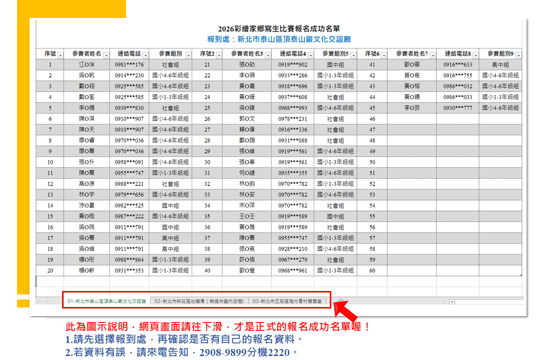 以下為「2026彩繪家鄉寫生比賽」報名成功名單,每週將定期更新。
