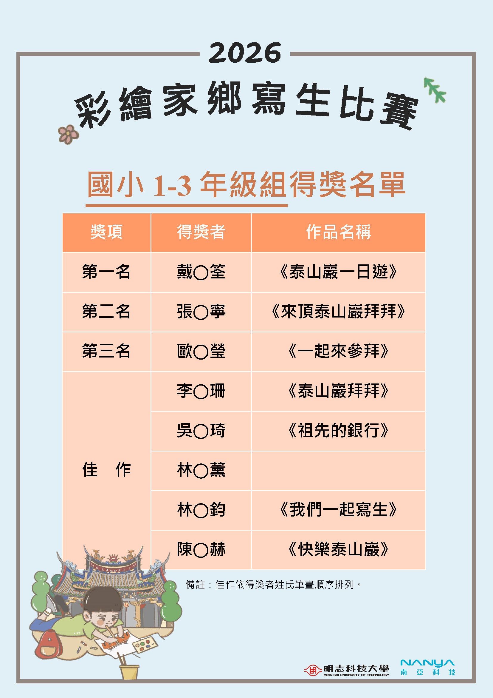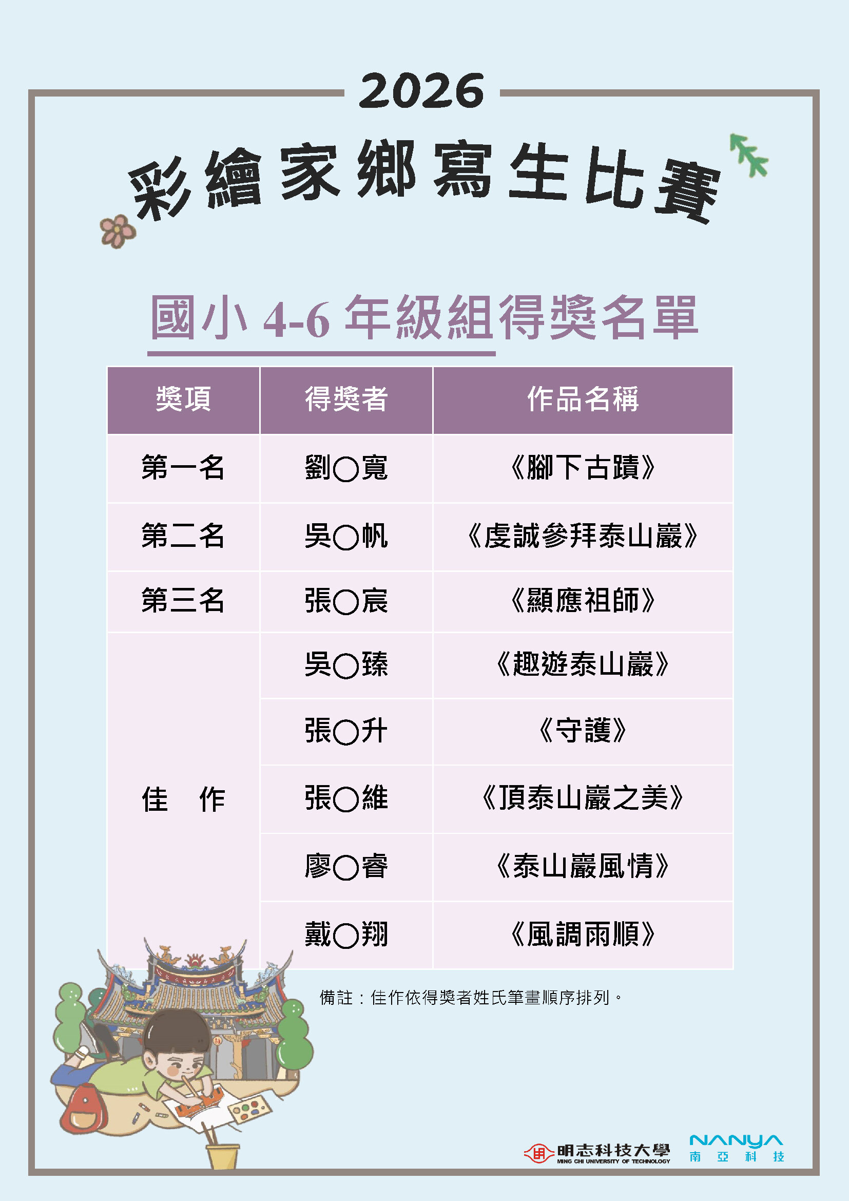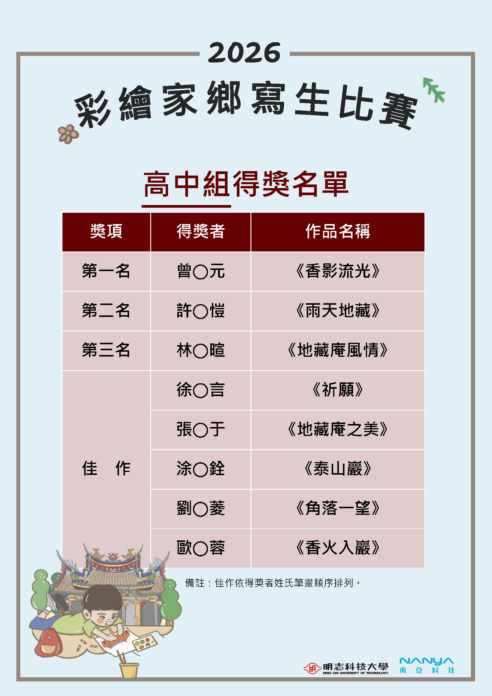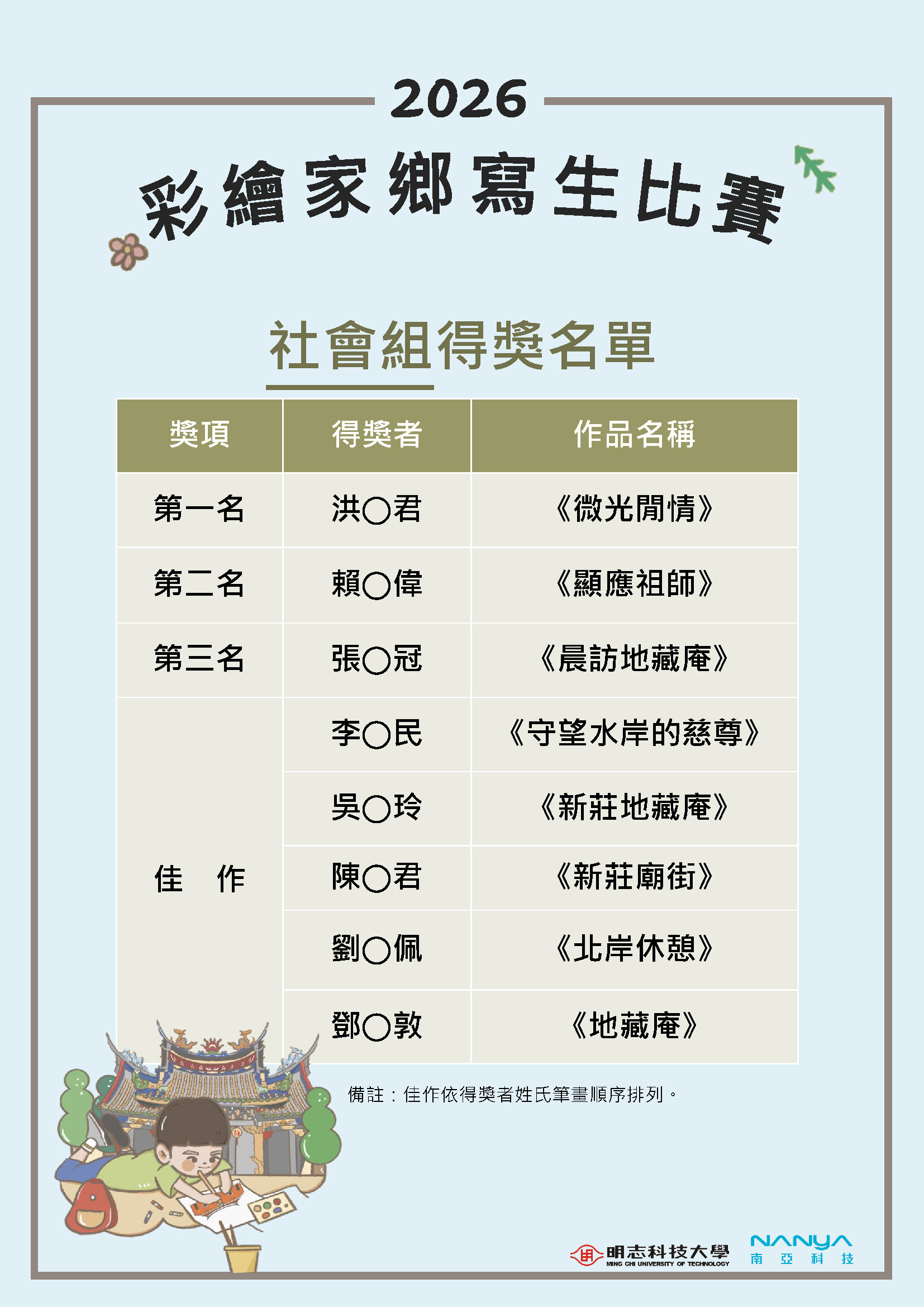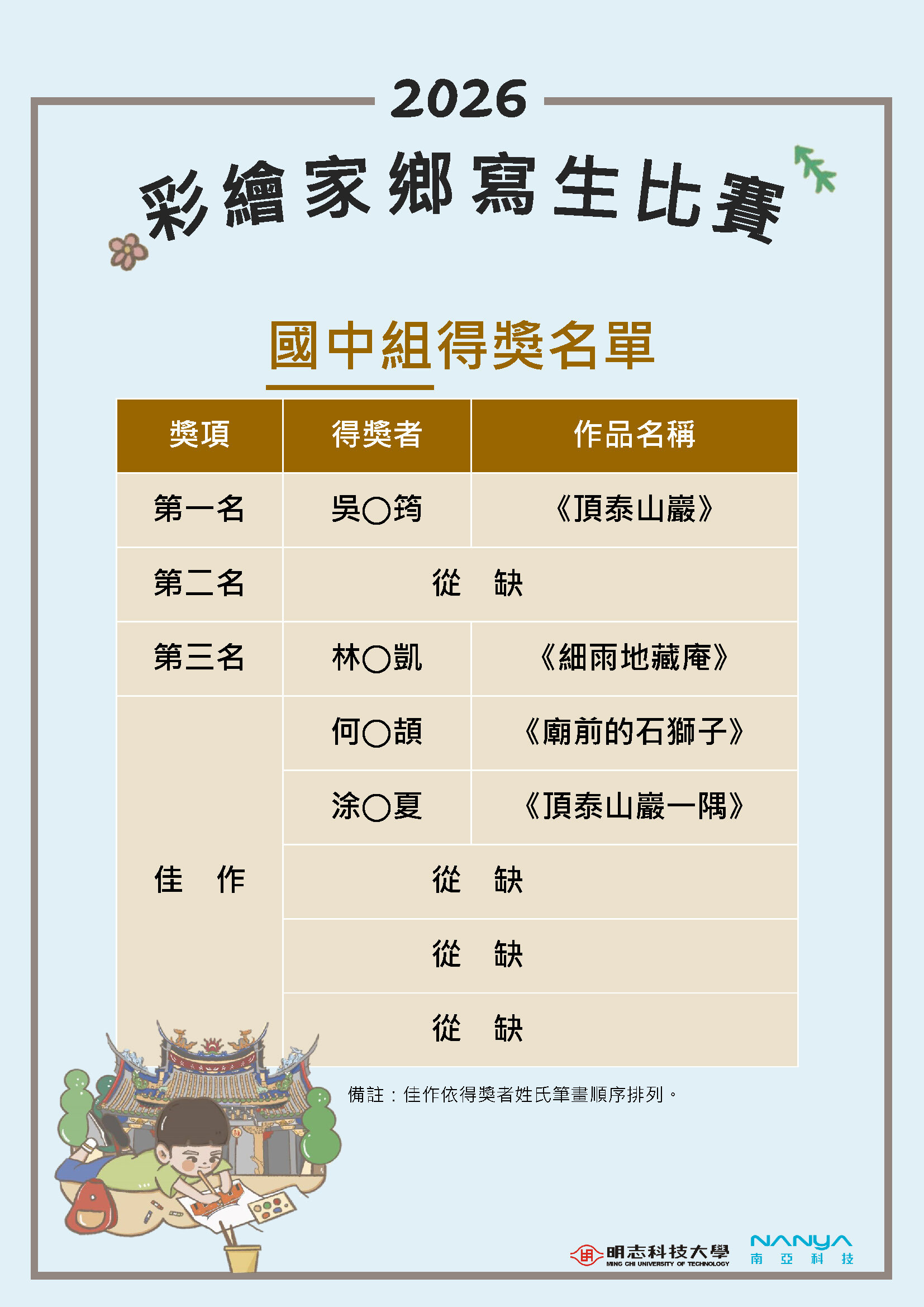 【得獎名單】2026彩繪家鄉寫生比賽得獎名單